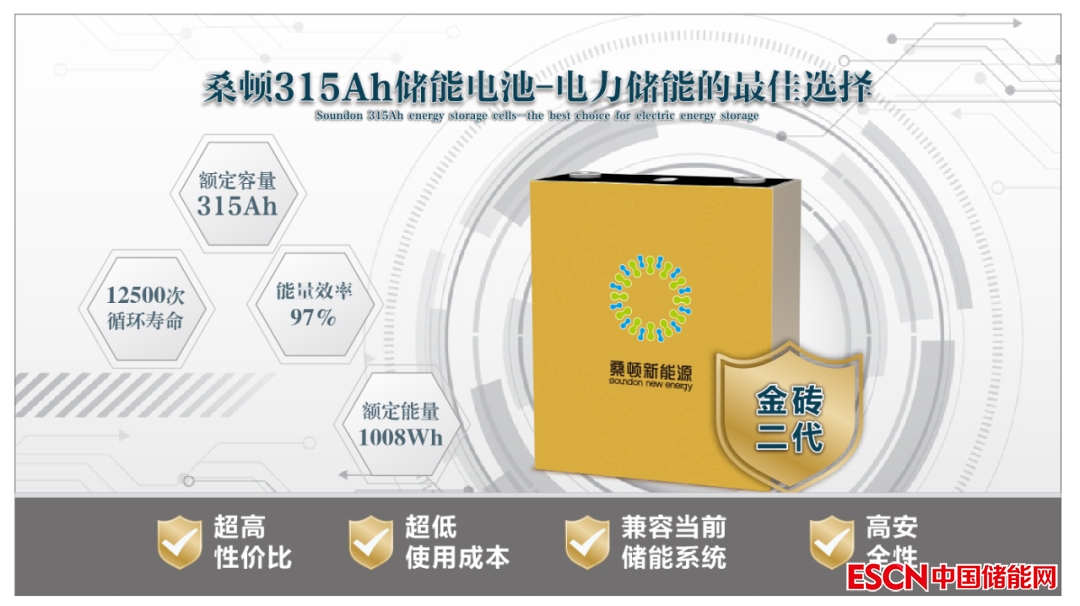 該電池單體容量擴(kuò)充為315Ah,額定能量突破1008Wh,循環(huán)壽命預(yù)計(jì)將超過12500次,能量效率可達(dá)97%以上,此外各項(xiàng)性能將進(jìn)一步升級(jí)優(yōu)化,同時(shí)兼容當(dāng)前的儲(chǔ)能系統(tǒng),將成為桑頓下一代儲(chǔ)能電池明星產(chǎn)品。