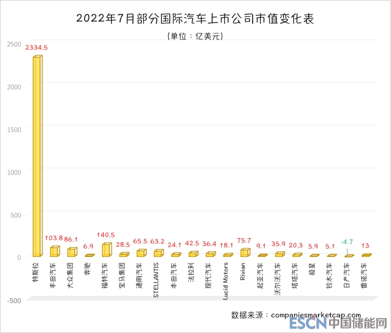 “普漲”成為7月海外新能源概念股的特征。此前,受疫情、俄烏沖突、供應(yīng)鏈不穩(wěn)定等情況影響,國(guó)際車(chē)企今年上半年在資本市場(chǎng)表現(xiàn)不佳,但進(jìn)入下半年,海外新能源概念股整體反彈。7月,特斯拉市值增加最多,增加了2334.5億美元;6月底在美上市的極星(PSNY,股價(jià)8.59美元,市值181.2億美元)7月市值微增5.9億美元。