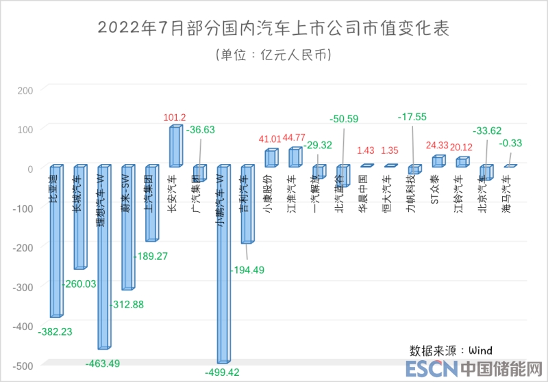 資本市場(chǎng)方面,7月,國(guó)內(nèi)整車(chē)企業(yè)則未能延續(xù)6月的強(qiáng)勢(shì)表現(xiàn),多家車(chē)企都呈現(xiàn)了回調(diào)狀態(tài)。比亞迪市值較6月減少了383.23億元;長(zhǎng)城汽車(chē)(SH601633,股價(jià)33.65元,市值3082億元)市值減少了260.03億元。