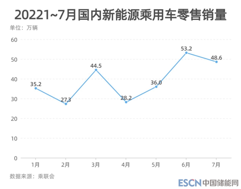 據(jù)乘聯(lián)會(huì)數(shù)據(jù),7月國(guó)內(nèi)新能源乘用車(chē)零售銷(xiāo)量為48.6萬(wàn)輛,同比增長(zhǎng)117.3%,環(huán)比下降8.5%;1~7月,國(guó)內(nèi)新能源乘用車(chē)?yán)塾?jì)零售273.3萬(wàn)輛,同比增長(zhǎng)121.5%。
