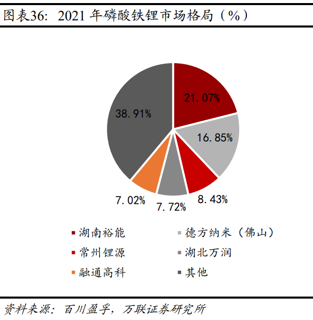 從工藝流程上說,磷酸鐵鋰主要由碳酸鋰和磷酸鐵兩個(gè)部分組成,磷酸鐵生產(chǎn)鏈為磷礦-高純磷酸/工業(yè)磷酸一銨-磷酸鐵。磷化工和鈦白粉企業(yè)都擁有低成本生產(chǎn)磷酸鐵的能力,進(jìn)入磷酸鐵鋰幾乎沒有門檻。