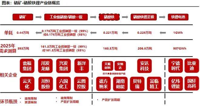 圖:磷礦-磷酸鐵鋰產(chǎn)業(yè)鏈概覽 圖源:方正證券