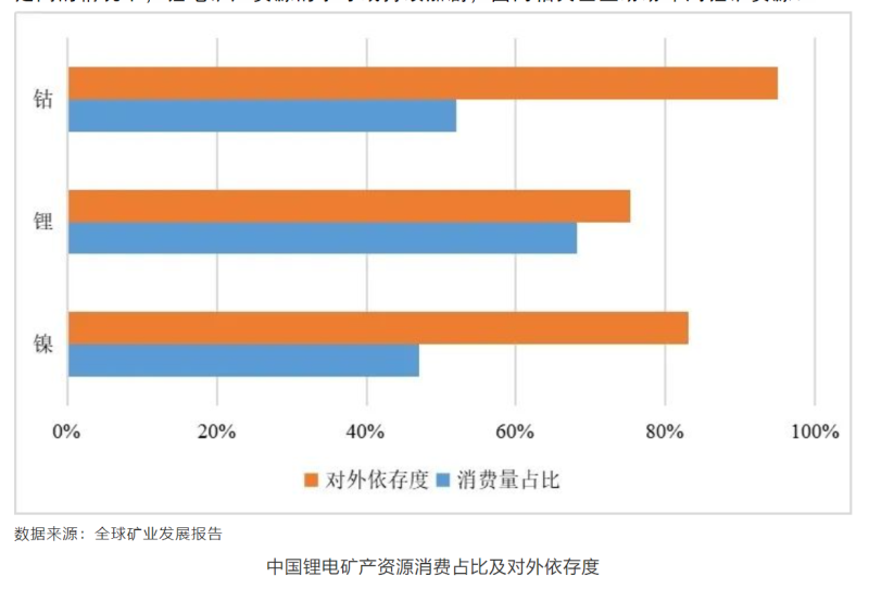 中國鋰電礦產資源消費占比及對外依存度