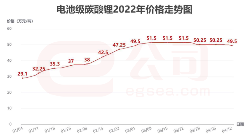 碳酸鋰價(jià)格在今年以來首次跌破50萬(wàn)元關(guān)口。鑫欏鋰電數(shù)據(jù)顯示,4月12日國(guó)內(nèi)電池級(jí)碳酸鋰均價(jià)相比前一日下跌5000元至49.5萬(wàn)元/噸。