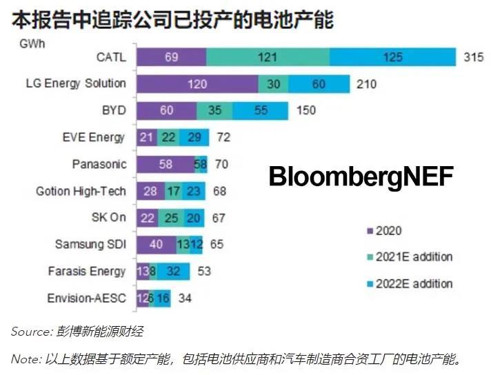截止2020年底,本報(bào)告中追蹤公司已投產(chǎn)的電池產(chǎn)能總量