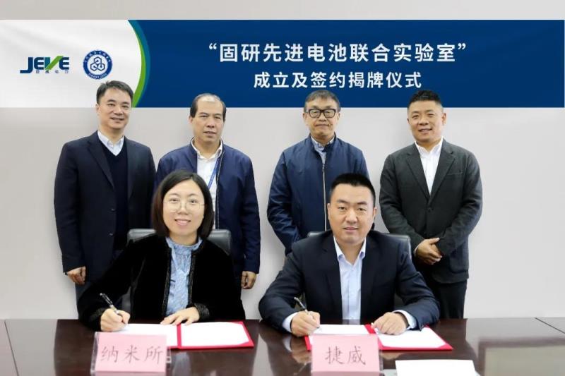 11月9日,天津市捷威動力工業(yè)有限公司(以下簡稱“捷威動力”)與中國科學(xué)院蘇州納米技術(shù)與納米仿生研究所(以下簡稱“中科院蘇州納米所”)共建的“固研先進(jìn)電池聯(lián)合實驗室”,在蘇州產(chǎn)業(yè)園區(qū)正式成立并舉行簽約揭牌儀式。捷威動力CEO閭陳立、名譽(yù)董事長兼首席科學(xué)家郭春泰、研究院副院長馬華、基礎(chǔ)研發(fā)部總監(jiān)高秀玲,中科院蘇州納米所黨委書記鄧強(qiáng)、技術(shù)轉(zhuǎn)移中心主任冀曉燕、陳立桅研究員,沈炎賓項目研究員出席了簽約揭牌儀式。