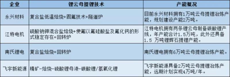 云母提鋰方面,國內(nèi)云母提鋰出貨量集中在4 家江西企業(yè),包括永興材料、江特電機(jī)(銀鋰新能源)、飛宇新能源、南氏鋰電等。