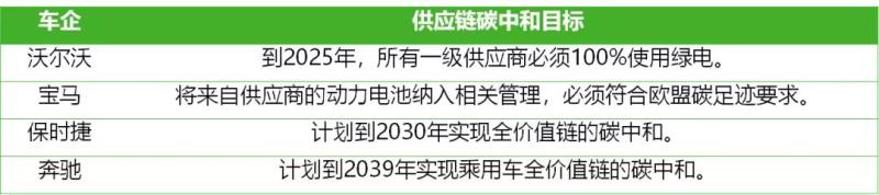 與政策法規(guī)同步而來的,還有越來越多的車企已經(jīng)明確提出對于供應(yīng)鏈環(huán)節(jié)的減碳。