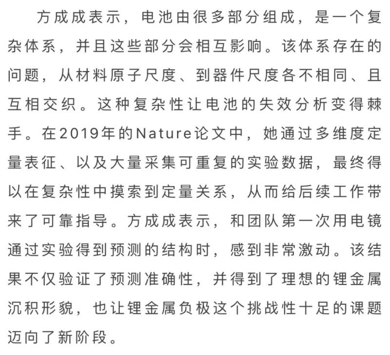 “論文正式發(fā)表之前,研究成果就已通過預(yù)印公開,很快就有工業(yè)界人士表示,使用我們的研究結(jié)論,讓其產(chǎn)品得到了非常好的性能。此次成果將會被廣泛應(yīng)用到軟包鋰金屬電池里?!闭撐倪€未發(fā)表,業(yè)界已經(jīng)一片叫好,但方成成認(rèn)為其中也有新能源汽車“東風(fēng)正盛”的原因。