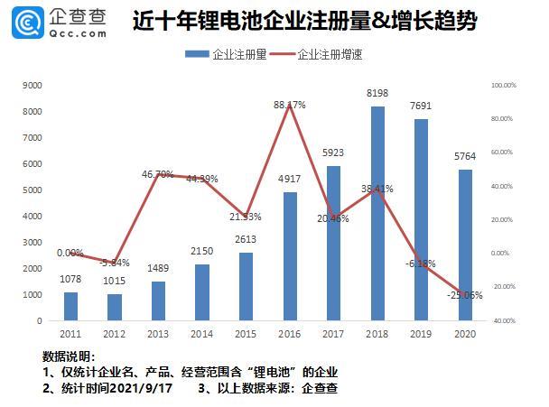 我國(guó)2021年前八個(gè)月新增鋰電池相關(guān)企業(yè)2324家
