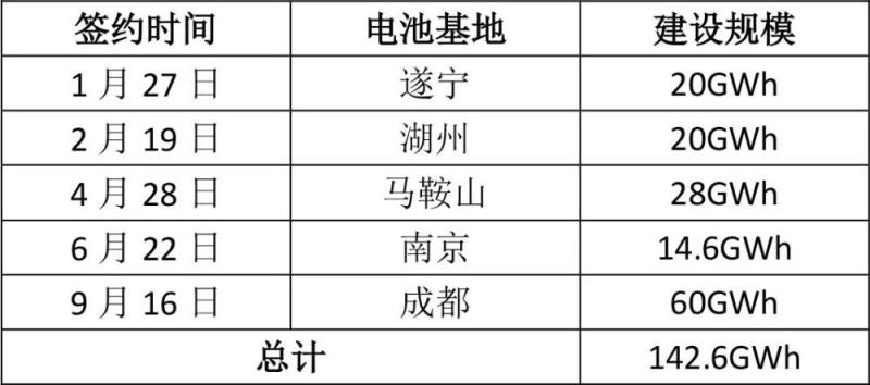 9月16日,蜂巢能源宣布,公司與成都市政府簽訂戰(zhàn)略合作協(xié)議,擬斥資220億元在成都建設(shè)總產(chǎn)能約60GWh的動(dòng)力電池制造基地及西南研發(fā)基地。據(jù)電池中國(guó)了解,這已經(jīng)是蜂巢能源今年宣布投建的第五大生產(chǎn)基地,僅今年以來,蜂巢能源宣布規(guī)劃將要新建的動(dòng)力電池規(guī)模就已超過140GWh。