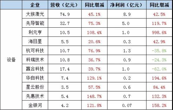 以鋰電設備為重要板塊的11家上市公司中,營收增長全部為正,8家凈利潤同比正向增長。