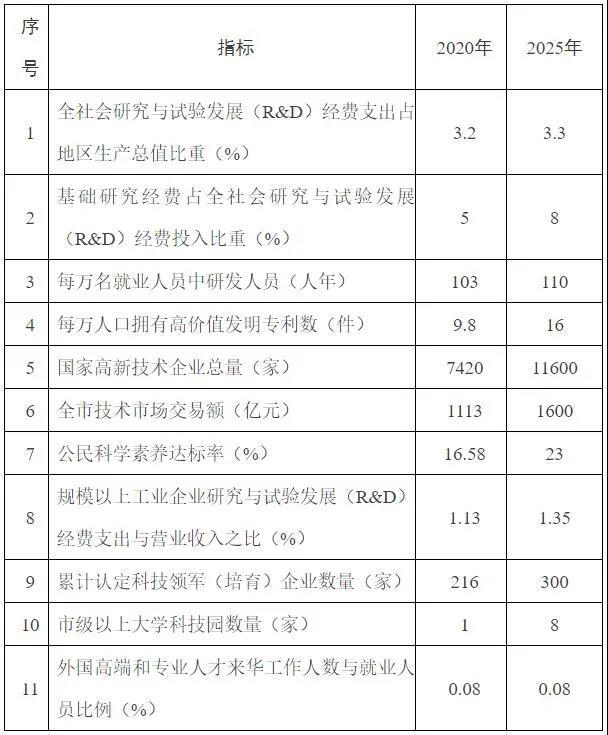 到2025年,創(chuàng)新驅(qū)動高質(zhì)量發(fā)展取得顯著成效,創(chuàng)新型城市建設(shè)取得顯著進(jìn)展,為建成全國先進(jìn)制造研發(fā)基地、打造自主創(chuàng)新重要源頭和原始創(chuàng)新主要策源地、支撐創(chuàng)新型國家建設(shè)作出重要貢獻(xiàn)。