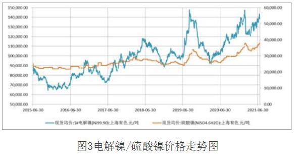 硫酸鎳(六水硫酸鎳)6月30日價格為3.65萬元/噸,上半年累計上漲15%。從近兩年的走勢看,硫酸鎳市場日益受到電解鎳市場的影響,兩者相關度日益提升,但硫酸鎳波動幅度相對較小。隨著高冰鎳的成功投產(chǎn),這種相關性還會進一步加強。從中長期基本面上看,受新能源汽車動力電池行業(yè)的拉動(行業(yè)復蘇疊加三元高鎳化大趨勢不變),硫酸鎳總體需求樂觀。因此,盡管短期高位承壓、面臨震蕩調(diào)整,但中長期總體預計將保持強勢震蕩。
