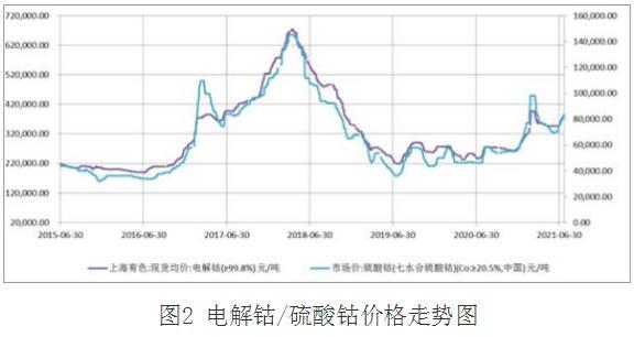 從去年下半年以來,鈷市場開啟一輪大幅上漲,電解鈷從24萬元/噸一度漲到39.65萬元/噸;硫酸鈷價格則從4.6萬元/噸一度上漲至9.8萬元/噸,漲幅超過一倍。進入3月份以后,鈷市場進入震蕩調(diào)整,近期又有所回升。6月30日,電解鈷價格為34.95萬元/噸,上半年累計上漲27.6%;硫酸鈷價格為7.6萬元/噸,上半年累計上漲33.3%。