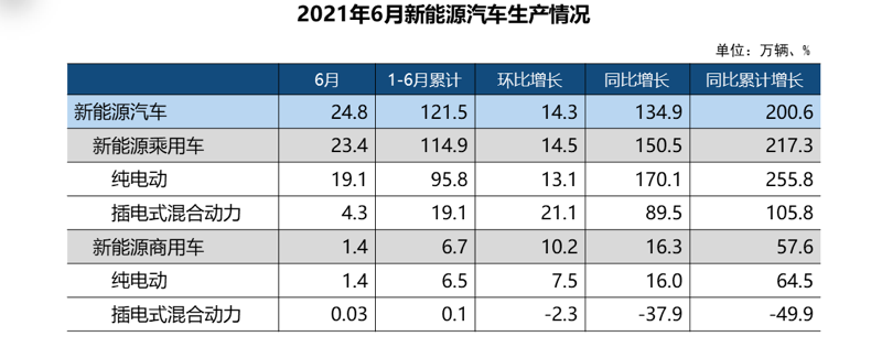 中汽協(xié)數(shù)據(jù)顯示,今年前半年,國(guó)內(nèi)國(guó)內(nèi)新能源汽車乘用車的生產(chǎn)情況為121.5萬(wàn)輛,同比增長(zhǎng)200.6%。