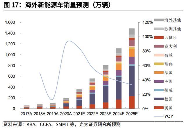 預(yù)計 2025 年海外新能源汽車銷量 1500 萬輛,動力電池裝機量 757GWh