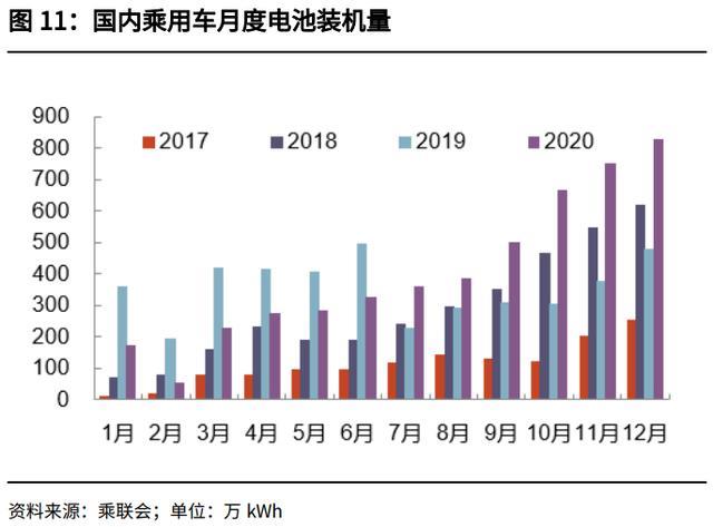 明星車型上市帶動鐵鋰需求。磷酸鐵鋰裝機的大部分增量是從 2020 年下半年開 始,主要有三種明星車型帶動:五菱宏光 MINI、特斯拉 Model 3 鐵鋰版、比亞 迪漢,預(yù)計還將有很多車型往鐵鋰路線轉(zhuǎn)。新能源汽車由政策拉動向市場化轉(zhuǎn)變, 對補貼依賴度降低,因而 2021Q1 顯現(xiàn)出淡季不淡的態(tài)勢。