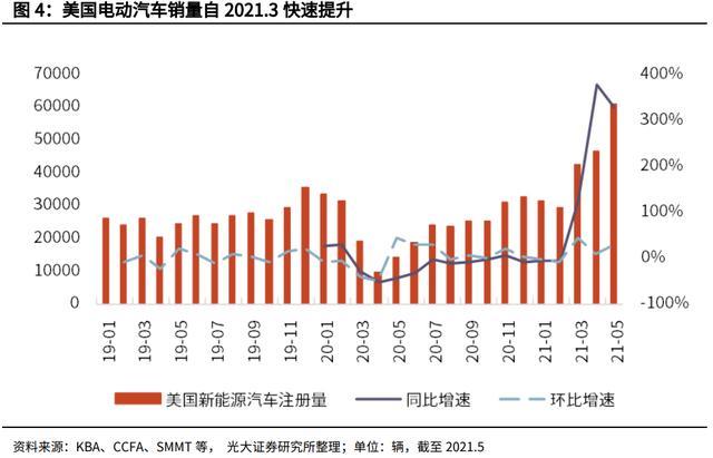 與特朗普政府不同的是,拜登政府出于國際競爭、內(nèi)部政治、提振經(jīng)濟等因素大 力推動“綠色經(jīng)濟”及新能源發(fā)展。美國總統(tǒng)拜登上任時宣布了 2 萬億美元的基 建計劃,其中有 1710 億美元專門用于一系列電動出行措施,比如:支持汽車制 造商建立國內(nèi)原材料供應(yīng)鏈,消費者將因購買美國制造的電動汽車而獲得補貼和 稅收優(yōu)惠,還要求白宮近 65 萬臺的聯(lián)邦車隊全部換成電動汽車。