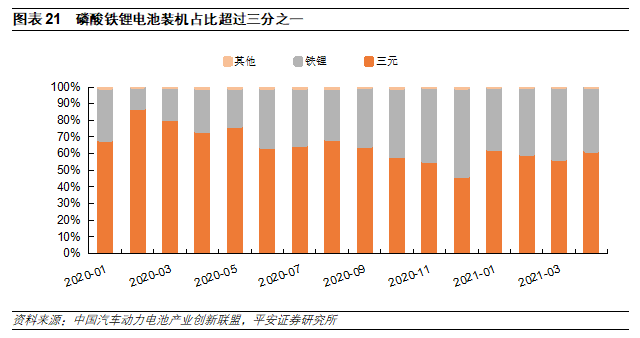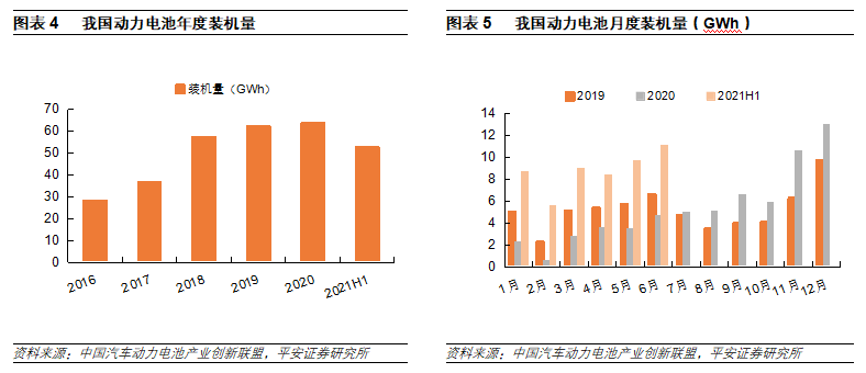 在新能源汽車(chē)超預(yù)期銷(xiāo)量的帶動(dòng)下,動(dòng)力電池裝機(jī)量也在攀升。2021年H1,我國(guó)動(dòng)力電池裝機(jī)量達(dá)52.49GWh,同比增長(zhǎng)200%,相比2019年H1上漲了75%。新能源汽車(chē)銷(xiāo)售走強(qiáng)帶動(dòng)動(dòng)力電池裝機(jī)數(shù)據(jù)走強(qiáng)。