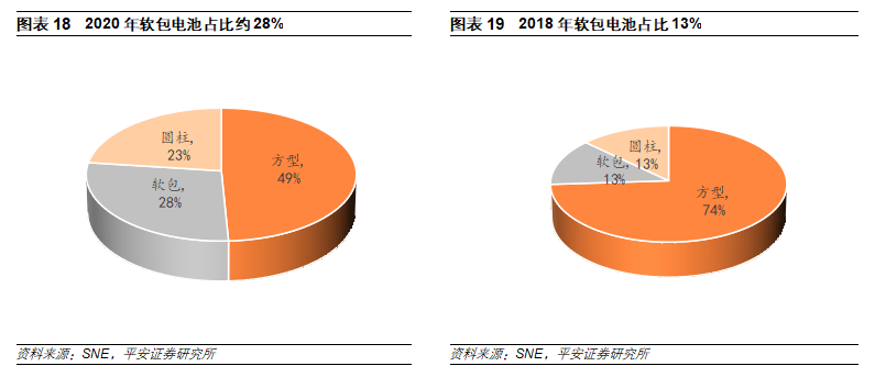 目前鋰電池的封裝技術(shù)主要有三種,即圓柱、方形和軟包。三種電池各有利弊,其中圓柱電池產(chǎn)品一致性好,方形電池成熟度較高且獲得中日韓三國(guó)全面認(rèn)可,軟包電池安全性高且得到海外主機(jī)廠(chǎng)普遍認(rèn)可。三種電池技術(shù)所對(duì)應(yīng)的加工工藝不完全一樣,圓柱電池多用卷繞工藝,軟包電池多用疊片工藝,方形電池既可以用卷繞工藝,也可以用疊片工藝,目前以卷繞工藝為主。