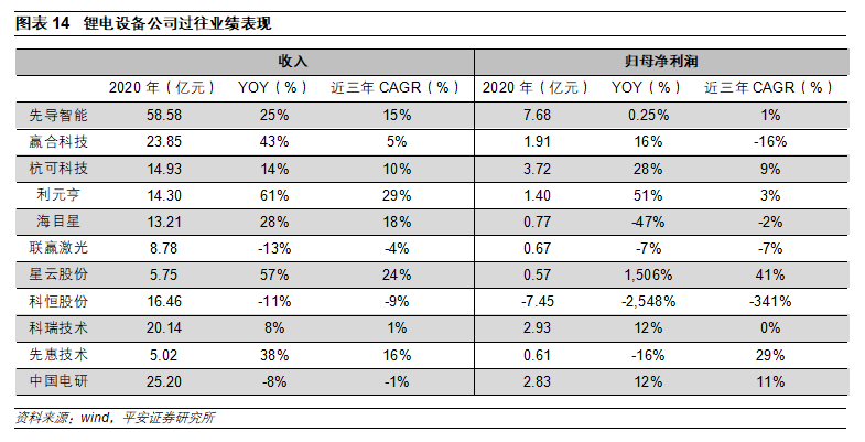 2)二線(xiàn)設(shè)備品牌有望崛起。受益于本輪鋰電設(shè)備訂單外溢,二線(xiàn)品牌受益顯著,業(yè)績(jī)彈性更大。建議關(guān)注國(guó)內(nèi)二線(xiàn)鋰電設(shè)備優(yōu)秀代表。
