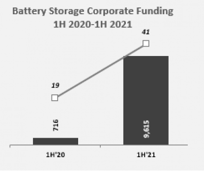 調(diào)查表明,電池儲(chǔ)能廠商在2020年上半年達(dá)成的19筆交易中籌集了7.16億美元,而今年上半年達(dá)成41筆交易籌集近100億美元