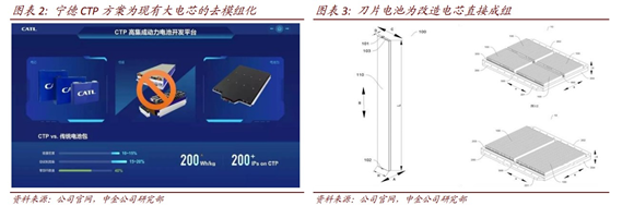 磷酸鐵鋰回春,實質(zhì)上歸功于電池包結(jié)構(gòu)件的創(chuàng)新,如比亞迪的刀片電池和寧德時代的CTP(Cell to Pack)。