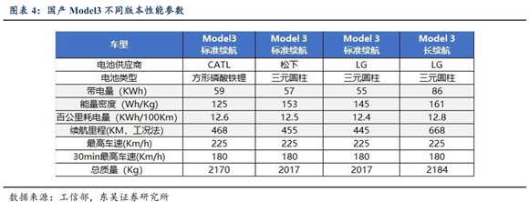 以B級車特斯拉Model3為例,分為標準續(xù)航和長續(xù)航,前者的里程在450~468km/h,后者為668km/h;在國內(nèi)標準續(xù)航版又分為磷酸鐵鋰和三元兩種,搭載了寧德時代CTP磷酸鐵鋰電池包的Model3續(xù)航能力比三元還優(yōu)秀一些。