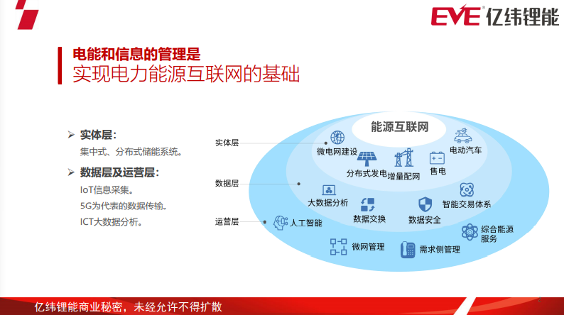 首先從實(shí)體層來講,大家都非常熟悉的集中式或者分布式的儲(chǔ)能系統(tǒng)、新能源汽車,都是能源互聯(lián)網(wǎng)的一些實(shí)體應(yīng)用。在數(shù)據(jù)層、運(yùn)營層,涵蓋了用能信息的采集、傳輸以及平臺(tái)的大數(shù)據(jù)分析。