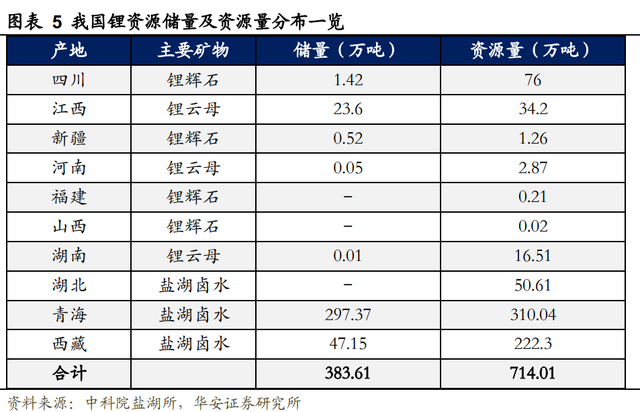 全球鋰資源量和儲量豐富,主要存在于鹽湖鹵水、硬巖礦石(包括鋰云母)、地下鹵水以及地熱鹵水中。根據(jù)USGS,2020年全球鋰資源量/儲量分別為8600/2100萬金屬噸。其中,鹵水鋰和硬巖鋰作為主要的鋰資源類型,分別占全球鋰資源的58%和36%;國內(nèi)約90%的鋰資源賦存于鹽湖鹵水,主要集中分布于青海西藏地區(qū)。