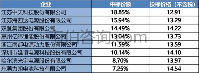 圖表3:2020年4月中國移動(dòng)通信用磷酸鐵鋰電池產(chǎn)品集中采購項(xiàng)目中標(biāo)情況(億元)
