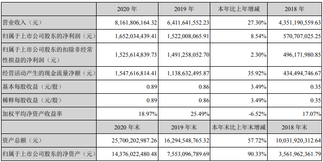 中國儲能網(wǎng)訊:4月19日,億緯鋰能發(fā)布2020年年度報告,公司去年持續(xù)夯實主營業(yè)務(wù)發(fā)展,實現(xiàn)營業(yè)總收入81.62億元,與上年同期相比增長27.3%;基于參股公司思摩爾國際非經(jīng)常性和非現(xiàn)金項目計提的影響,歸屬于母公司股東的凈利潤為16.52億元,比上年同期增長8.54%;如不考慮上述計提的假設(shè)條件下,則歸屬于母公司股東的凈利潤為21.91億元,比上年同期增長43.93%。