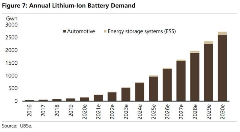 鋰電池汽車和鋰儲電系統(tǒng)將急劇加速鋰的消耗