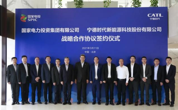 3月11日,在國家電投黨組書記、董事長錢智民,寧德時(shí)代董事長曾毓群的共同見證下,國家電投黨組成員、副總經(jīng)理劉明勝與寧德時(shí)代首席客戶官、高級(jí)副總裁,儲(chǔ)能事業(yè)部總裁譚立斌分別代表雙方簽署戰(zhàn)略合作協(xié)議。根據(jù)協(xié)議,雙方將本著“優(yōu)勢互補(bǔ)、市場主導(dǎo)、互利共贏”的原則,發(fā)揮各自在行業(yè)領(lǐng)域的優(yōu)勢,加強(qiáng)品牌、市場、技術(shù)與產(chǎn)品合作,探索高效、務(wù)實(shí)的商業(yè)合作模式,共同提升可持續(xù)發(fā)展和創(chuàng)新能力。同期,寧德時(shí)代與國家電投智慧能源公司還簽署了落地協(xié)議。簽約前,雙方進(jìn)行會(huì)談,就推進(jìn)落實(shí)戰(zhàn)略合作協(xié)議取得深度共識(shí)。