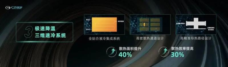 再其次,“彈匣電池”配備了急速降溫的溫控系統(tǒng),廣汽通過全貼合液冷結(jié)構(gòu),實現(xiàn)了散熱面積提升40%,散熱效率提升30%,有效防止熱蔓延。