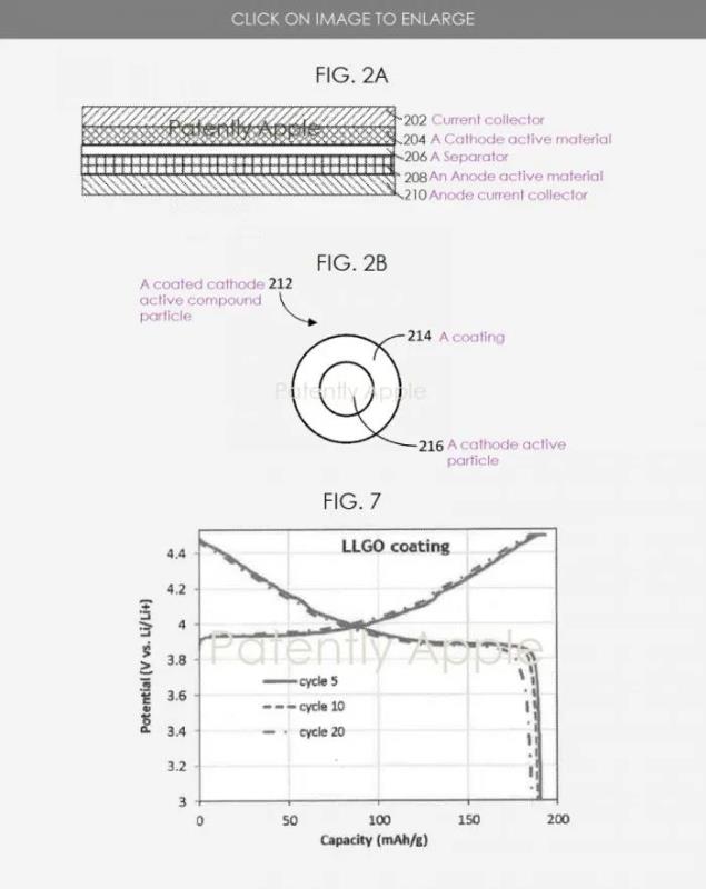 2月11日,一項(xiàng)新專利公布,該專利描述了需要一種新的涂層來(lái)提高電池性能。據(jù)蘋(píng)果公司介紹,通常情況下將氧化鋁或氟化鋁涂層涂在陰極顆粒上可以防止過(guò)渡金屬?gòu)年帢O到電解液的溶解。不幸的是,這種氧化鋁或氟化鋁涂層會(huì)造成電池的能量密度損失,需要一種新的涂層來(lái)幫助提高性能。蘋(píng)果公司和美國(guó)政府共同發(fā)明了一種表面涂層和鋰離子正極材料的組合,以證明比傳統(tǒng)的氧化鋁涂層改善了平均電壓和循環(huán)保持率。