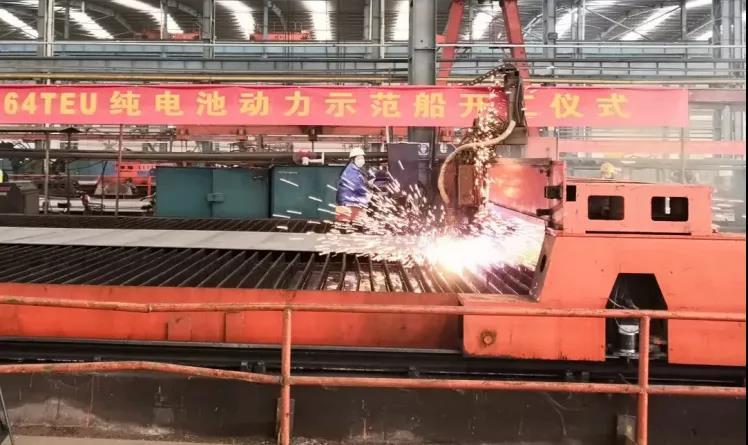 1月28日,由國網(wǎng)電動(dòng)汽車公司投資、國網(wǎng)智慧能源交通技術(shù)創(chuàng)新中心負(fù)責(zé)研發(fā)的國內(nèi)首艘純電池動(dòng)力集裝箱船在江蘇泰州開工建造。
