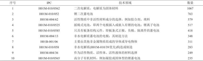表2 固態(tài)電解質(zhì)專利申請的技術(shù)領(lǐng)域分布