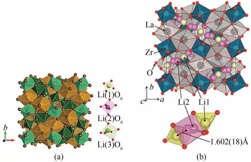 圖5 LLZO的(a)四方相晶體結(jié)構(gòu);(b)立方相晶體結(jié)構(gòu)