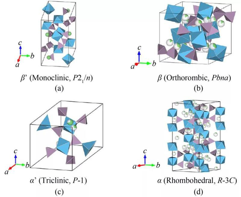 圖4 LiZr2(PO4)3的四個多態(tài)結(jié)構(gòu)