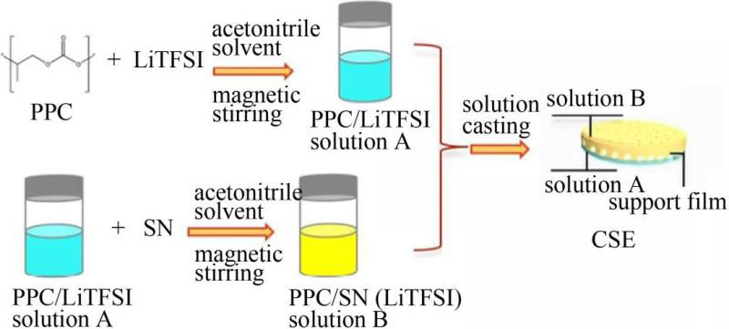 圖2 三明治型固態(tài)聚合物電解質(zhì)的制造示意圖