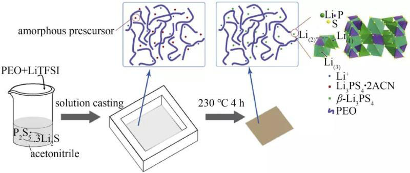 圖1 原位制備PEO/Li3PS4雜化聚合物電解質(zhì)的工藝流程圖
