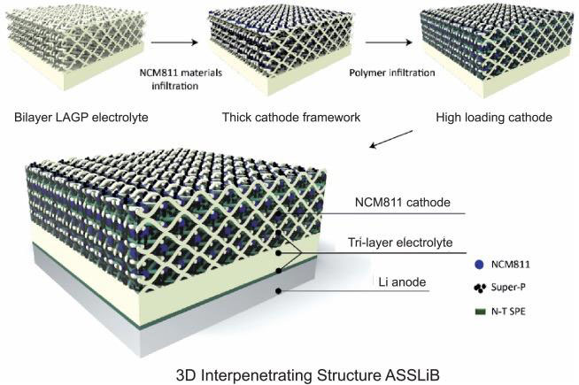 圖片圖5 高NCM811正極材料負(fù)載量的三維結(jié)構(gòu)LAGP全固態(tài)鋰離子電池示意圖