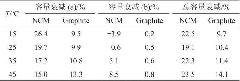 化成和老化溫度對電極SEI膜的特性起決定性作用。關(guān)于化成溫度,有著兩種對立的研究結(jié)果。一方面是高溫化成被報道有著嚴重的容量損失。German等通過研究Lix(Ni1/3Co1/3Mn1/3)yO2(NCM)/石墨全電池、NCM半電池和石墨半電池化成過程中溫度對容量損失和隨后電化學(xué)性能的影響,表明正極和負極的容量損失來源不同,其中負極容量損失主要是因為石墨表面SEI膜的生成,而正極容量損失則歸因于NCM的動力學(xué)受到抑制。隨著化成溫度的上升,正負極的不可逆容量損失增加,而由于NCM電極的鋰擴散系數(shù)升高,使得正極與負極的容量損失比率下降,因此嚴重劣化了石墨的電池性能。如表2所示,電極分別在不同溫度下化成和隨后室溫下充放電兩個過程的容量損失?;蓽囟壬仙?,石墨負極電極容量損失歸因于電解液組分的分解程度加劇。NCM正極由于動力學(xué)加快,容量損失下降,但低溫化成后造成的容量損失在隨后的常溫循環(huán)過程中可部分恢復(fù)。因此高溫化成對全電池并沒有優(yōu)勢,正負極均表現(xiàn)嚴重的鋰損失和石墨電極循環(huán)穩(wěn)定性的下降。同樣地,Yan等通過對比石墨半電池和NCM/石墨全電池在不同溫度下化成行為的差距,得出以下結(jié)論:高溫化成導(dǎo)致嚴重的副反應(yīng),低溫化成將形成低離子導(dǎo)電率的SEI膜,常溫化成形成的SEI膜具有最好的離子導(dǎo)電性和穩(wěn)定性。不同的是,Huang等證明高溫化成后,電池有著更高的放電容量和更好的容量保持率。通過探究不同化成溫度下(25 ℃和45 ℃)LiNi1/3Co1/3Mn1/3O2/人造石墨電池的循環(huán)性能,結(jié)果顯示不可逆容量損失從25 ℃的18.4%下降到45 ℃的10.5%。45 ℃高溫化成有利于降低SEI膜阻抗和不可逆容量損失,1.077 mA/cm2大電流化成條件下的不可逆容量損失也僅為12.8%。同樣在高溫化成下具有更高的傳輸速率,一個更均勻的SEI膜可在石墨負極形成。