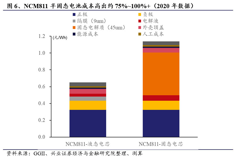 ?據(jù)測算,NCM811固態(tài)電池成本相比傳統(tǒng)電池要高出約75%,成本中心在固態(tài)電解質(zhì)成分。