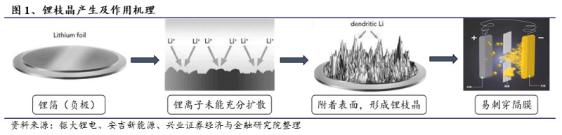 ?鋰枝晶在負極表明附著,生長到一定程度會刺穿隔膜,導致內(nèi)部短路,引發(fā)起火。