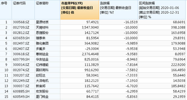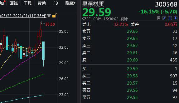 截至收盤,星源材質(zhì)(300568.SZ)大跌逾16%,天賜材料(002709.SZ)、恩捷股份(002812.SZ)、璞泰來(603659.SH)等5只個股跌停。