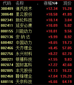 中國儲能網(wǎng)訊:1月12日,鋰電池板塊持續(xù)分化,截至發(fā)稿,星云股份、新綸科技、安納達(dá)等5股漲停,道氏技術(shù)、中國動力、天齊鋰業(yè)等多股紛紛跟漲。奇信股份、圣陽股份、恩捷股份等多股跌幅居前。