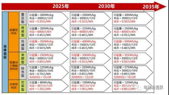 ③2035年,新體系電池實現(xiàn)實用化。電池單體比能量達到500Wh/kg以上,成本進一步下降;動力電池技術及產業(yè)發(fā)展處于國際領先水平。